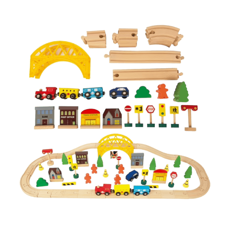 Classic wooden train set that encourages creative storytelling, building skills, and imaginative play.